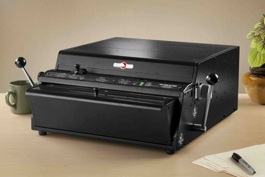 binding machine turns loose pages into impressive looking documents.