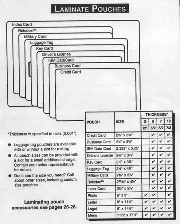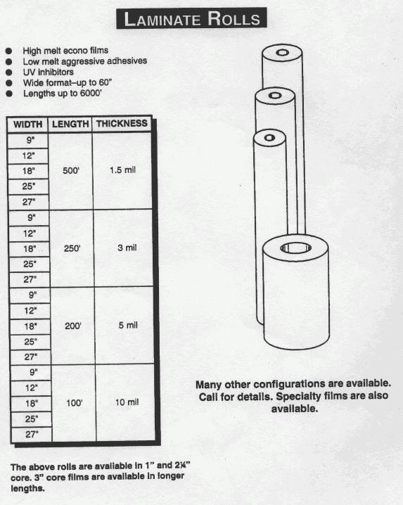 CALL FOR AVAILABILITY OF OTHER SIZES AND COLORS Laminating Supplies Pouch Films - In Stock Roll Films – In Stock ID Card & Pouch Accessories